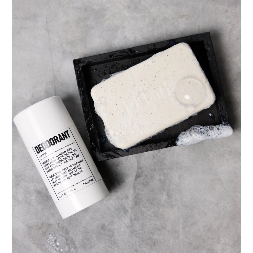 Level up your routine with the Blu Atlas Welcome Bundle — the ultimate lineup for guys who demand more from their grooming. This powerhouse set is packed with everything you need to look, feel, and smell your best: Blu Atlas Classic-scented Shampoo, Conditioner, Body Wash, Exfoliating Bar Soap, and 48-Hour Deodorant keep you clean and fresh from head to toe, while the Volcanic Ash Cleanser and Hydrating Moisturizer lock in clear, healthy skin. Finish strong with the 10ml of Atlantis Eau de Parfum — bold, confident, unforgettable.