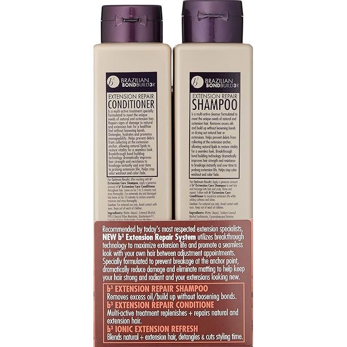 Multi-active treatment repairs signs of damage to natural and extension hair to help maintain a seamless look and prolong extension life.