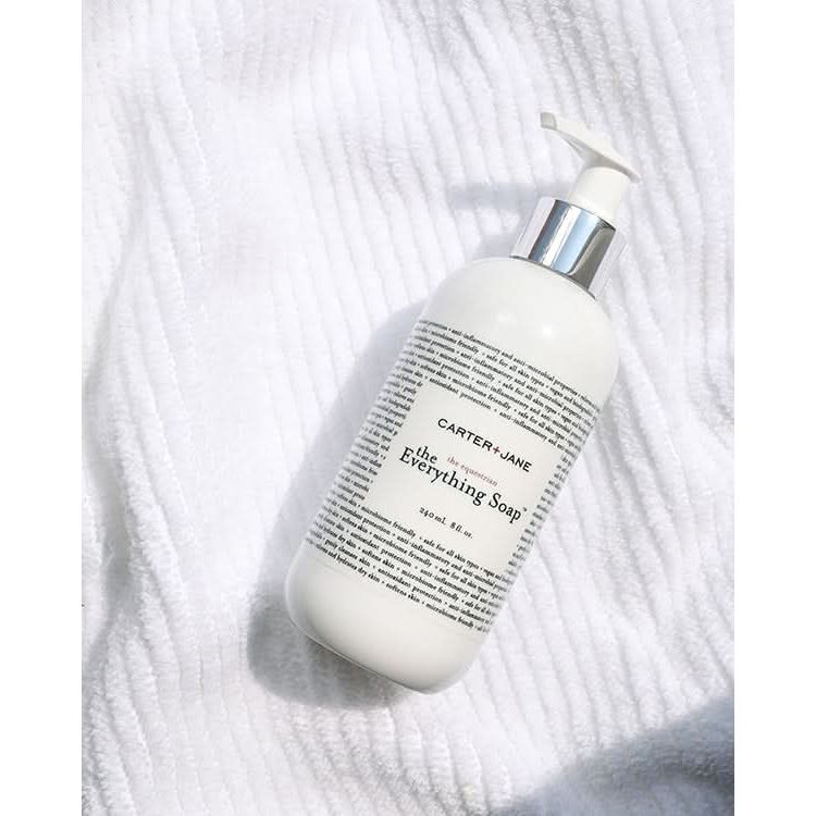 The Everything Soap™ is formulated with certified-organic and naturally derived vegan ingredients. Carter+Jane biodegradable, cruelty-free ingredients pose no threat to the environment or to animals and are completely safe and non-toxic for use on humans of all ages. Carter+Jane never use synthetic preservatives, thickeners, or foaming agents, which are harmful to your skin health and, in Carter+Jane opinion, completely unnecessary. And unlike most soap on the market, The Everything Soap™ doesn't strip away your skin's microbiome...the good bacteria on your skin to protect you from pathogens that could negatively affect your skin and overall health.