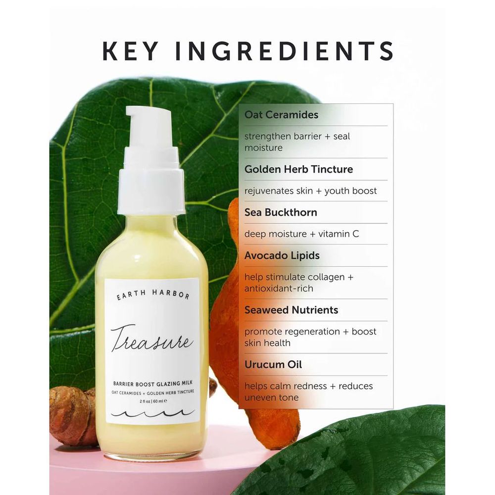 aqua (water), propanediol (plant-derived humectant)°, isoamyl laurate (plant-derived emollient)°, coco-caprylate/caprate (coconut-derived emollient)°, avena sativa (oat) kernel extract°, persea gratissima (avocado) fruit oil°, calendula officinalis (calendula) flower extract°, sorbitan olivate (olive-derived emulsifier)°, sodium stearoyl glutamate (plant-derived emulsifier)°, curcuma longa (turmeric) root extract°, seaweed (laminaria digitata) extract*, moringa oleifera (moringa) seed oil°, hippophae rhamnoides (sea buckthorn) fruit extract°, tocopherol (sunflower vitamin e)*, lactobacillus ferment (naturally-derived probiotic)°, melia azadirachta (neem) flower & leaf & bark extract°, ocimum sanctum (holy basil) leaf extract°, ocimum basilicum (basil) flower extract°, cetyl palmitate (coconut-derived emollient)°, sorbitan palmitate (coconut-derived emulsifier)°, cetearyl olivate (olive-derived emulsifier)°, phospholipids (plant-derived moisturizing agent)°, xanthan gum (plant-derived emulsifier)°, lecithin (plant-derived emulsifier)°, pullulan (plant-derived moisturizing agent)°, sclerotium gum (plant-derived thickening agent)°, benzyl alcohol (naturally-occuring preservative)°, dehydroacetic acid (plant vinegar-derived preservative)°, citric acid (naturally-occurring pH regulator)°