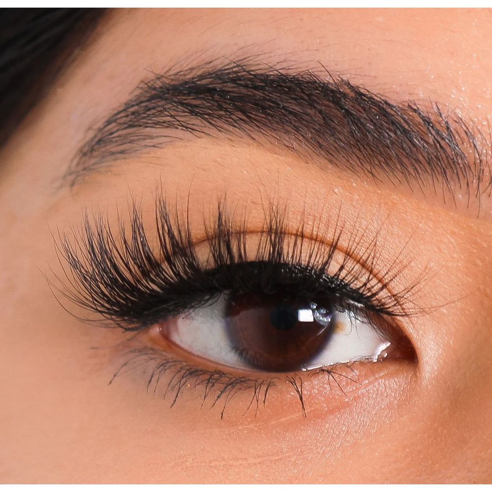 Before applying glue, be sure to cut lashes to your preference and flex lash band with your fingertips (back and forth) to make them more flexible. Apply glue to the band of the lashes with the precision brush wand applicator. Add extra glue on the ends of the lash band for an extra hold! Wait 30 seconds for glue to become tacky and apply along your natural lash line.