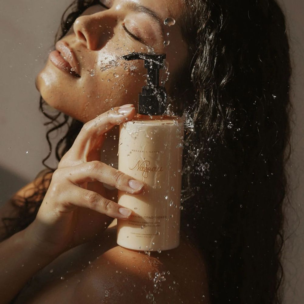 Apply a generous amount of conditioner to clean, wet hair starting at the ears all the way through to the ends. Leave on for several minutes. Rinse well under warm or cool water.