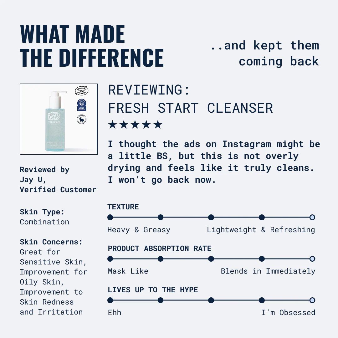 Apply 1-2 pumps (or as needed) onto dry or damp skin and massage to emulsify. Rinse thoroughly. For a quick face mask, leave on for five minutes before rinsing. Wear SPF during the day. Pro Tip: Pair with our Exfoliating Face Scrubber to maximize the benefits. Pro Tip #2: We recommend cleansing your face in the shower to avoid the tsunami mess around your sink.