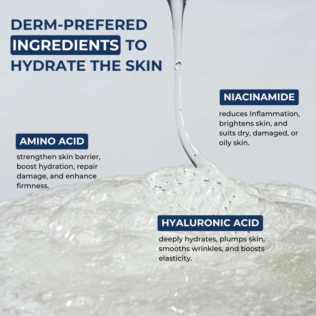 Ingredient List Niacinamide Active between 2-5%, Niacinamide is our jack of all trades. Its an anti-inflammatory and has skin brightening properties. It has also been shown to help control sebum oil which is why this is one of our favorites for guys with dry, damaged, or oily skin. Hyaluronic Acid We use a blend of 4 types of hyaluronic acid which provide maximum hydration while helping to enhance the lipid barrier. This multi-weight blend replenishes water from the outside while holding water from the inside. Amino Acids Another powerhouse ingredient best known for its moisture locking abilities & soothing properties.