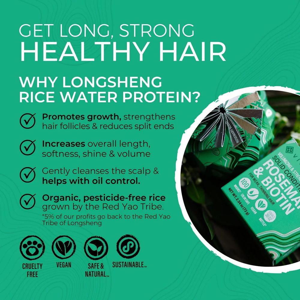 Sodium Cocoyl Isethionate, Behentrimonium Methosulfate, Longsheng Rice Water, Cocoa Butter, Sodium Lactate, Glycerin, Jojoba Oil, Cetyl Alcohol, Shea Butter, Butylene Glycol (Plant-Based), Stearic Acid, Hydrolyzed Rice Protein, Broccoli Seed Oil, Bamboo Extract, Rice Bran Oil, Vitamin B8, Vitamin B5, Rosemary Leaf Oil, Biotin, Lavender Flower Oil, Vitamin E, Marjoram Leaf Oil, Roman Chamomile Flower Oil, Peppermint Leaf Oil, Lemongrass Leaf Oil, Aloe Vera, Plai Root Oil, Kunzea Oil, Helichrysum Flower Oil